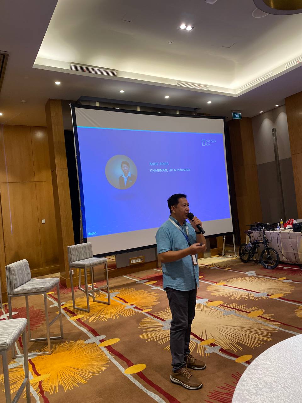 Acara diawali dengan sambutan dari Bapak Eka Mertanadi – Director One Data Asia, kemudian dilanjutkan dengan sambutan dari Bapak Andy Aries – Chairman HITA Indonesia yang berbagi cerita mengenai keluh kesah para member HITA, betapa ancaman cyber attack ini menjadi momok yang menakutkan bagi semua pelaku IT karena jika hal ini terjadi tentunya akan sangat berdampak pada jalannya operasional Hotel.