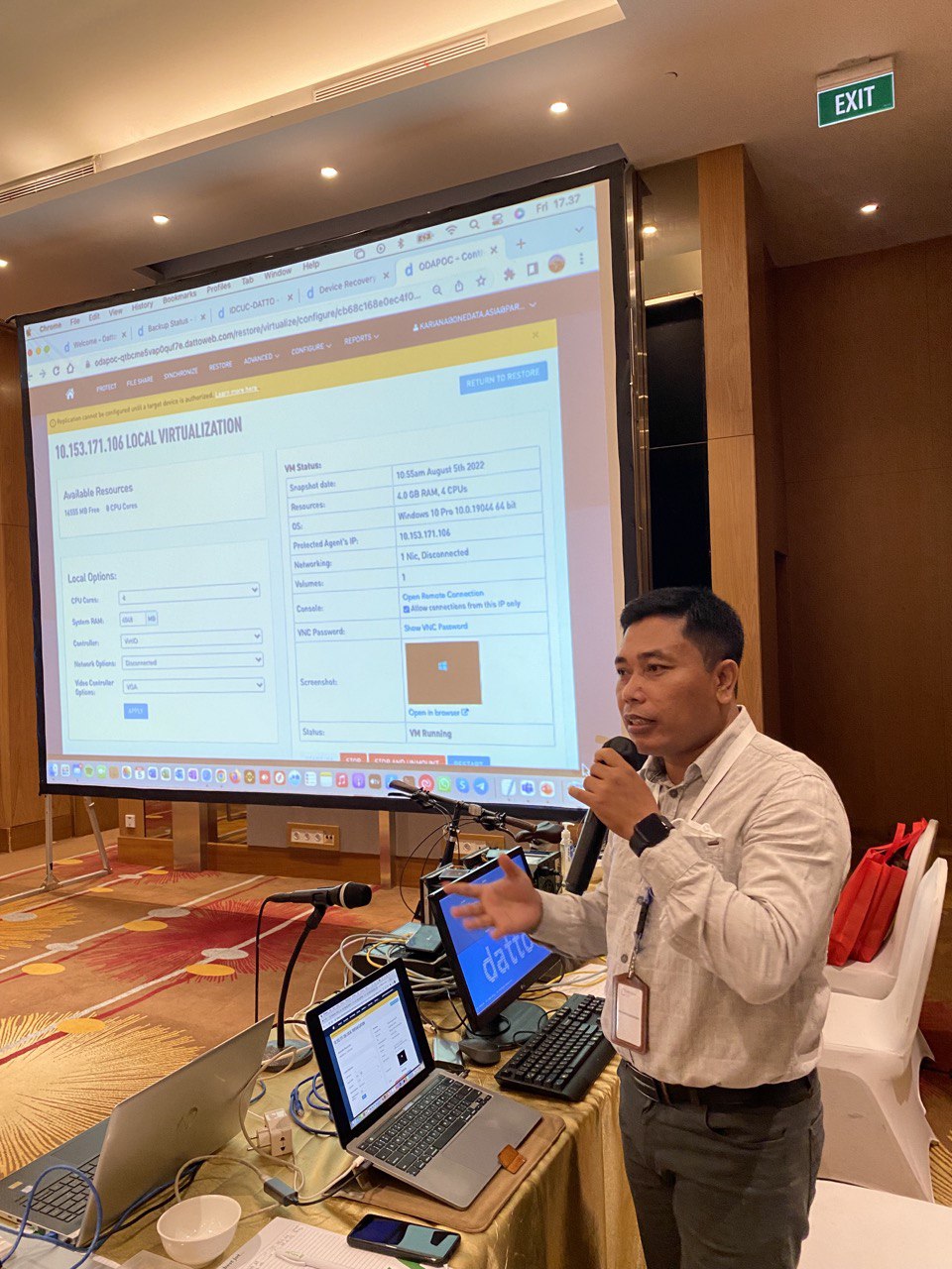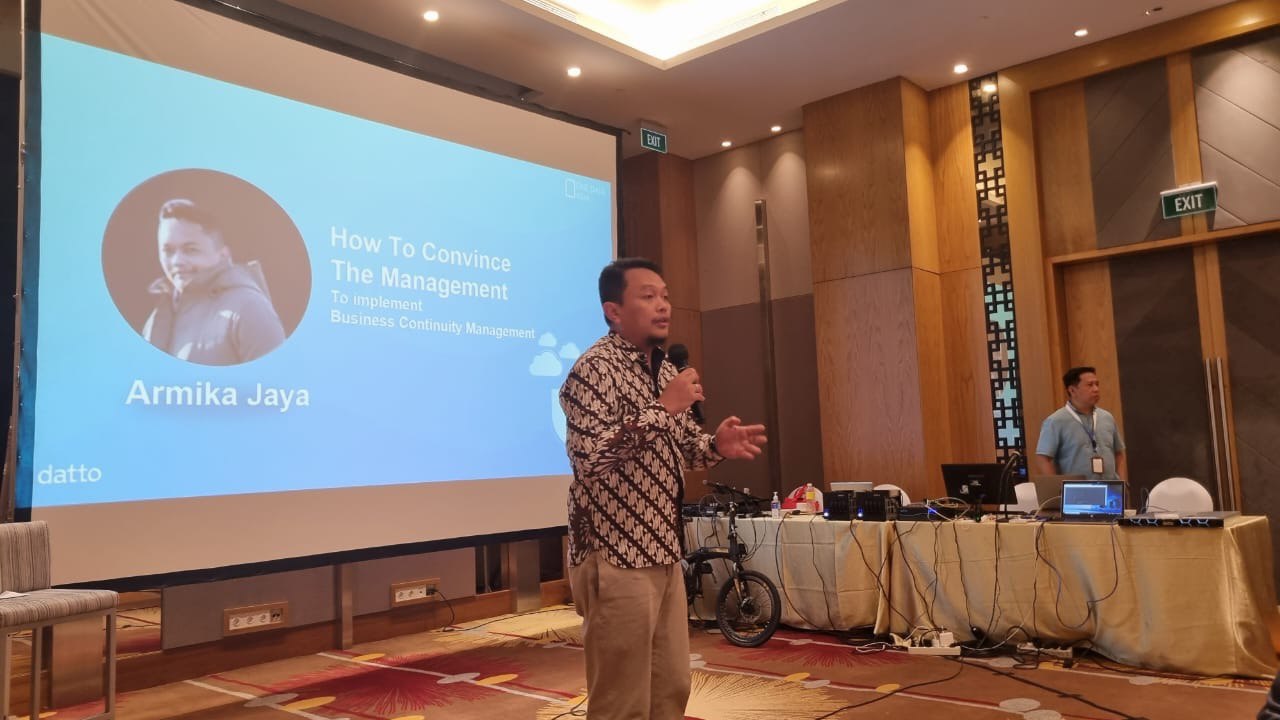 Selanjutnya Mr. Keith Choy – Regional Manager ASEAN Datto Singapore memberikan penjelasan singkat mengenai produk Datto BCDR dan teknologi Business Continuity & Disaster Recovery. Mr. Keith merekomendasikan ONE DATA ASIA sebagai Partner Datto Terbaik di Indonesia dengan dukungan teknologi Datto mampu memberikan pelayanan di bidang Business Continuity & Disaster Recovery dengan team Support yang sangat handal dan mampu meresponse segala bentuk system failure, yang terjadi dalam berbagai industri.