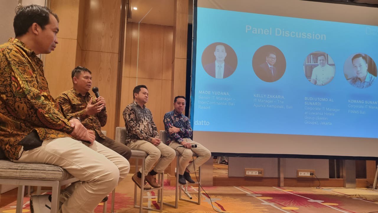 Sebelum acara Dinner dimulai, sesi sharing yang tidak kalah serunya yaitu sharing dari customer One Data Asia, yang terdiri dari Bapak Armika Jaya – CEO ProfIT Bali sekaligus sebagai moderator, Bapak Komang Sunantara – Corporate IT Manager FINNS Bali, Bapak Kelly Zakaria – IT Manager The Apurva Kempinski, Bapak Budi Utomo – Corporate IT Manager Luwansa Hotels Group (Santini Groups), Bapak Made Yudana – Senior IT Manager InterContinental Bali Resort. Mereka membagikan pengalaman betapa pentingnya memiliki teknologi backup, karena hal ini sudah dirasakan langsung oleh mereka sebagai IT ketika mengalami disaster datanya bisa terselamatkan dengan adanya Datto. Selain itu jika server mereka down, bisa dengan cepat juga hidup kembali sehingga operasional Hotel bisa terus berjalan. Team support One Data Asia juga sangat handal dan responsif. Hal lain yang dibagikan untuk para peserta yaitu tips & trick kepada bagaimana bisa meyakinkan manajemen agar menggunakan teknologi backup, tentunya sharing ini akan bermanfaat bagi para peserta yang selama ini mungkin merasa kesulitan untuk meyakinkan manajemen.